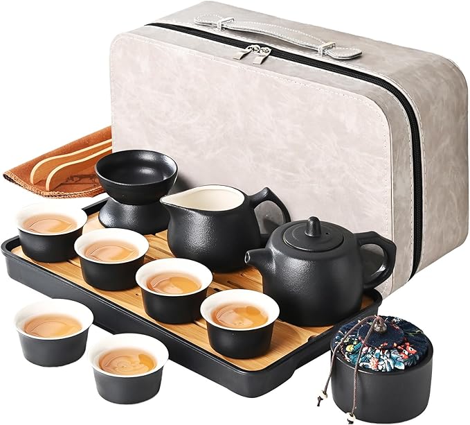 Chinese tea set traditional, chinese gongfu tea set for adults, Suitable for Travel Home Outdoor and Office (Jinglan 6cups)